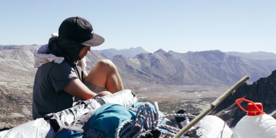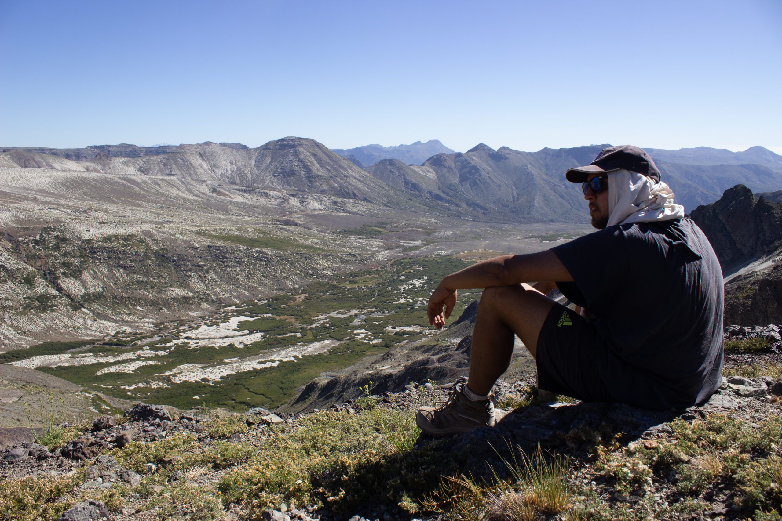 About to begin our journey. I’m writing underneath a Calafate bush, in front of the gargantuan Devil’s Tusk. It is so vast and massive that it gives the impression that I’m but a puppet, and the mountain a mere painting for us to believe our world is infinite. Those who have been there describe it as an overwhelming experience, like wanting to breathe, but the amount of air that goes in is more than what you can hold. Now, we must muster our strength, eat something, refill our bottles, and begin our journey.